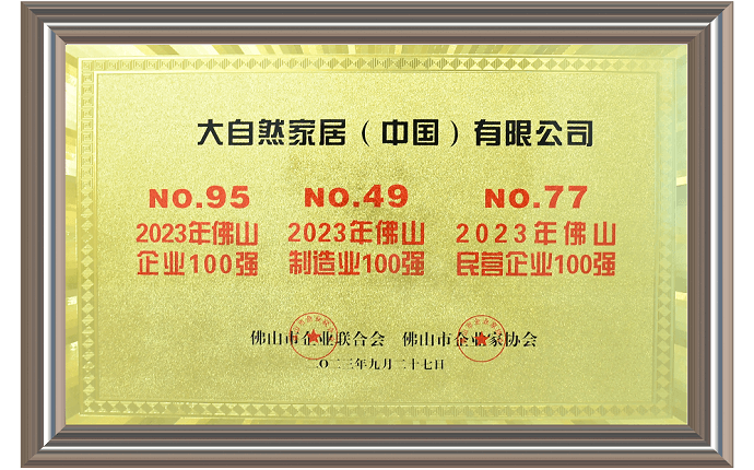 重磅!大自然家居入選“2023年佛山企業(yè)100強(qiáng)”等多個(gè)百強(qiáng)名單!