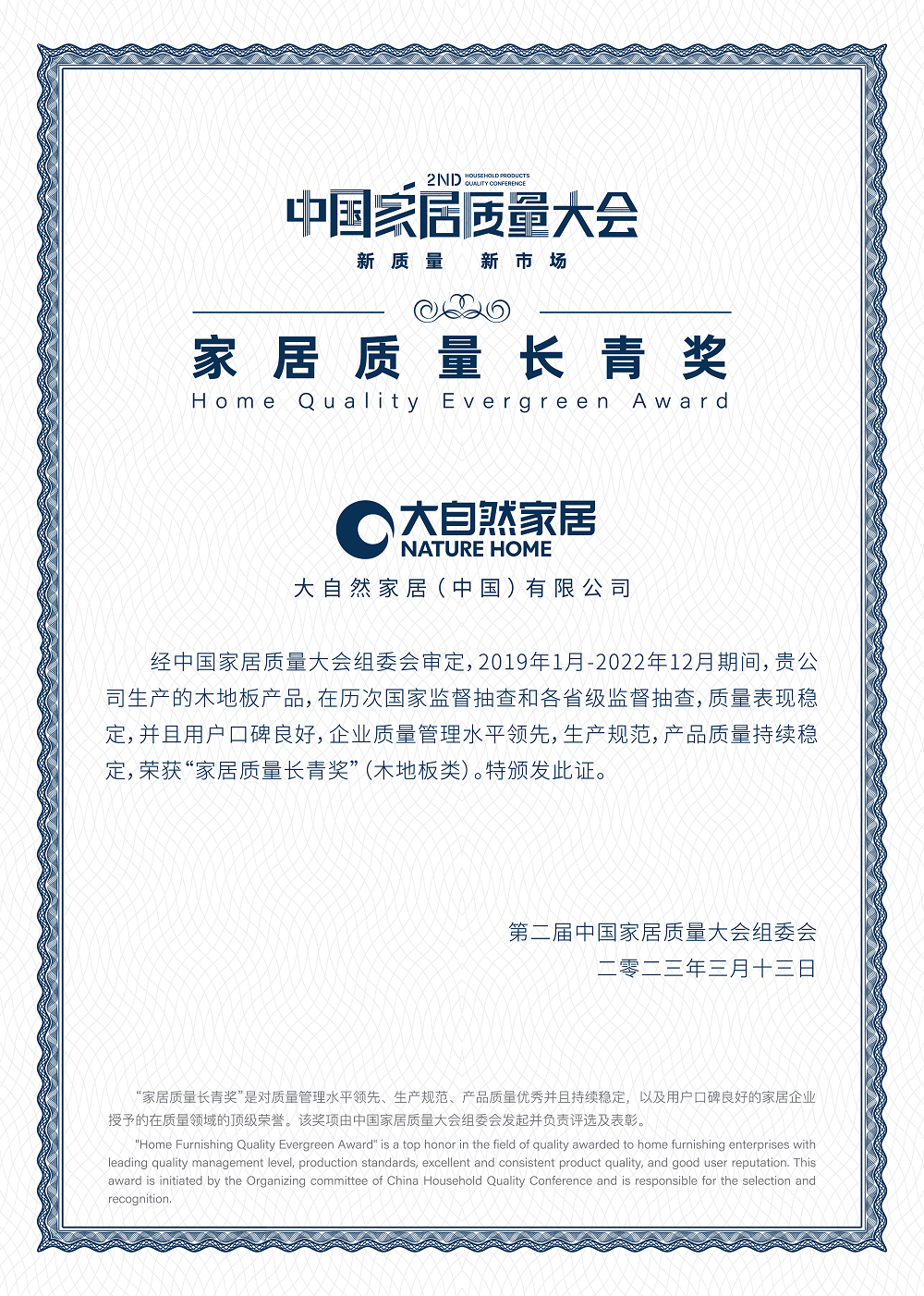 “家居質(zhì)量長青獎”是對質(zhì)量管理水平領先、生產(chǎn)規(guī)范、產(chǎn)品質(zhì)量優(yōu)秀并且持續(xù)穩(wěn)定,以及用戶口碑良好的家居企業(yè)授予的在質(zhì)量領域的榮譽,其評選標準也極其嚴苛,不僅近幾年企業(yè)不能出現(xiàn)重大質(zhì)量負面和生產(chǎn)質(zhì)量事故,且要求企業(yè)擁有完善的質(zhì)量管理體系,質(zhì)量水平取得突出成績并達到國際、國內(nèi)領先水平。此外,本著公平公正的原則,評選方對《2019-2021年家居質(zhì)量數(shù)據(jù)研究報告》和《2021-2022家居質(zhì)量白皮書》中2019年1月至2022年12月時間內(nèi),累計61余次關于木地板產(chǎn)品質(zhì)量國家監(jiān)督抽查、各省級市場監(jiān)管部門抽檢,涉及到的1466批次木地板的抽檢結果進行分析,四年期間內(nèi),產(chǎn)品經(jīng)過國家監(jiān)督抽查、各省級市場監(jiān)管部門抽檢全部合格,產(chǎn)品質(zhì)量表現(xiàn)穩(wěn)定的企業(yè),才能納入評獎范圍。