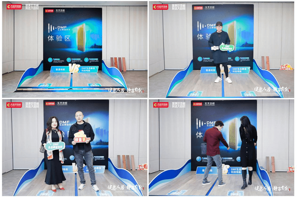 活動現(xiàn)場,大自然地板誠邀權威媒體、嘉賓前往DMF靜音空間體驗DMF生態(tài)靜音科技地板與普通地板的差別?,F(xiàn)場通過兩個不同區(qū)域的測試,明顯可見采用DMF生態(tài)靜音科技的地板穩(wěn)定無響聲;而普通地板踩上去則發(fā)出嘎吱的響聲,兩者產生了鮮明對比?,F(xiàn)場實際體驗之后,大自然DMF生態(tài)靜音科技新品得到在場權威媒體、嘉賓的高度認可。