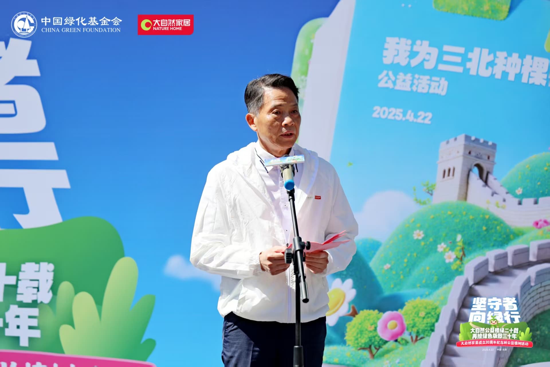 大自然家居董事長佘學彬在致辭中感謝各界多年來的支持,并表示,自1995年成立以來,大自然家居堅持“砍一棵樹,種十棵樹”的原則,在森林資源開發(fā)與保護間尋求平衡。自2006年攜手中國綠化基金會啟動“中國綠色版圖工程”以來,已在國內(nèi)外22個地區(qū)累計種植30片生態(tài)林,植樹數(shù)量超過100萬棵,覆蓋多個生態(tài)脆弱區(qū)域,通過科學造林提升了森林碳匯能力,為行業(yè)探索出一條低碳、可持續(xù)發(fā)展的有效路徑。