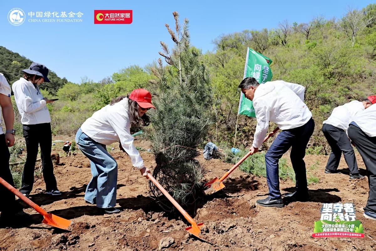 4月22日,值第56個世界地球日之際,大自然家居攜手中國綠化基金會,于北京密云區(qū)啟動“堅守者·向綠行”公益植樹活動。大自然家居以“成立30年、植樹20年”的雙里程碑,交出了一份“綠色智造”與“生態(tài)反哺”共生的可持續(xù)發(fā)展答卷?;顒蝇F(xiàn)場,中國綠化基金會、北京市園林綠化局、北京林學會、中國林業(yè)科學研究院、中國林產(chǎn)工業(yè)協(xié)會、中國林業(yè)產(chǎn)業(yè)聯(lián)合會、中國木材保護工業(yè)協(xié)會、中國木材與木制品流通協(xié)會代表,大自然家居高層管理人員、全國核心經(jīng)銷商和供應商代表,媒體以及大自然家居消費者、公益植樹環(huán)保志愿者等各界人士,見證“中國綠色版圖”公益工程20年成果及未來十年計劃啟動。