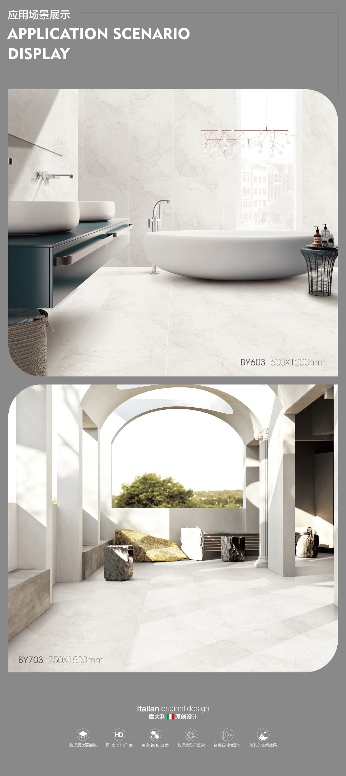 產(chǎn)品特性 表面柔和,防污效果強(qiáng),防滑R10指標(biāo)高,抗折強(qiáng)度好