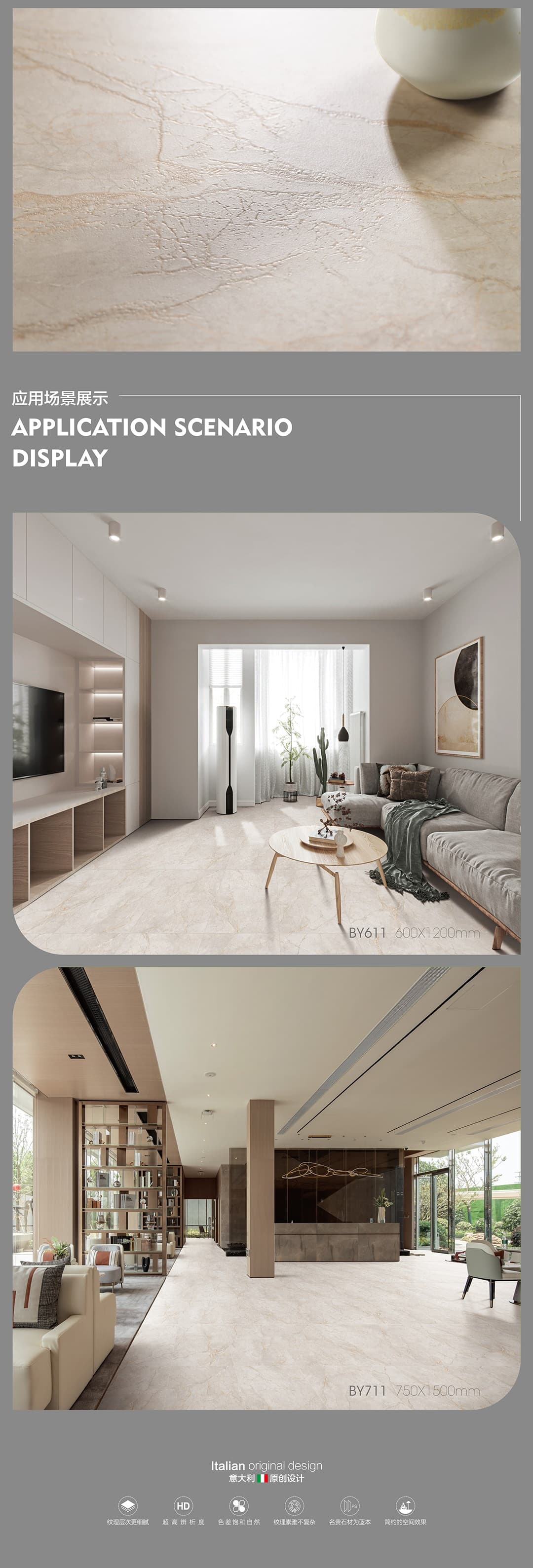 產(chǎn)品特性 表面柔和,防污效果強(qiáng),防滑R10指標(biāo)高,抗折強(qiáng)度好